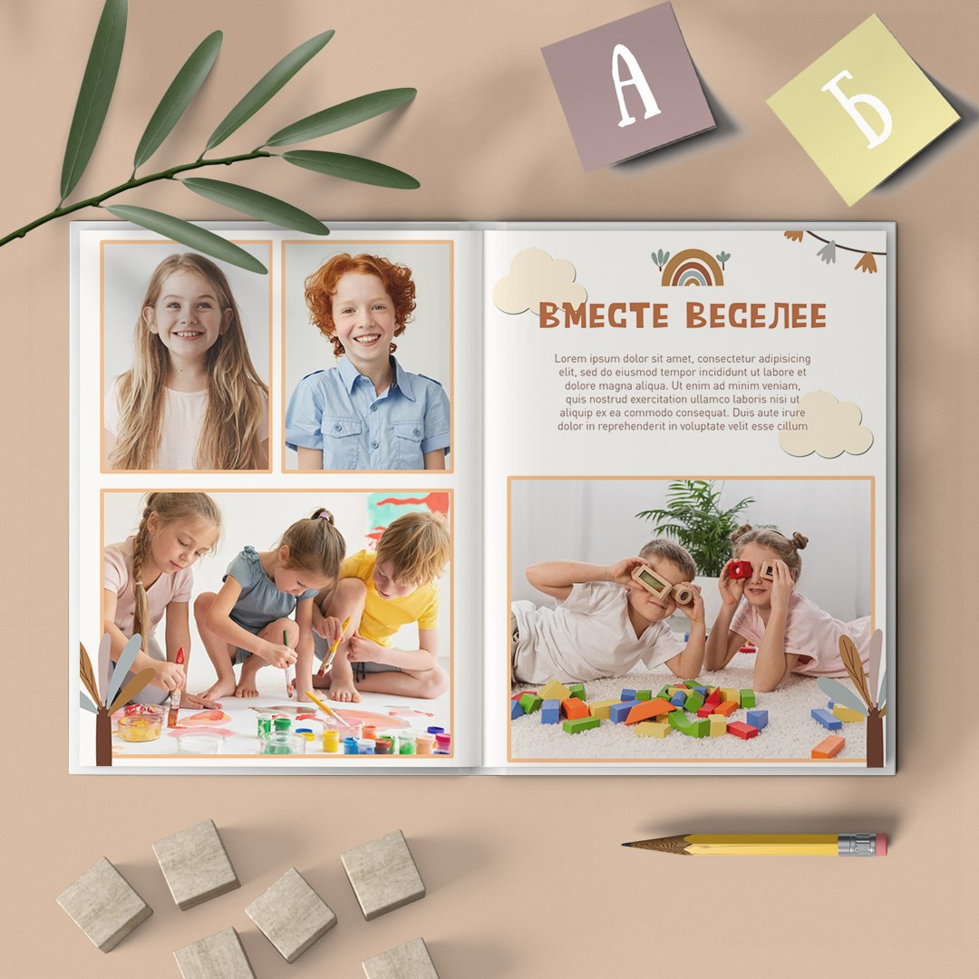 ● Многостраничный альбом Премиум: 8 разворотов — мягкие журнальные страницы, твердый переплет — стоимость 3500р