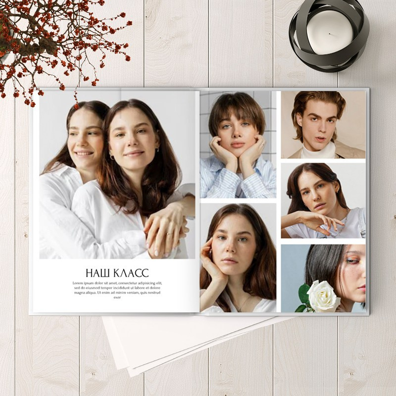 ● Многостраничный альбом Премиум: 8 разворотов — мягкие журнальные страницы, твердый переплет — стоимость 3500р
